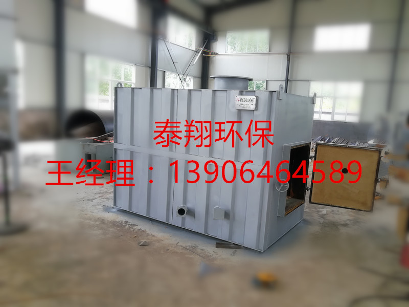 高溫氣體再進(jìn)入余熱回收裝置使85%的熱量被回收,余熱回收裝置排出的煙氣溫度降到200-250℃,余熱回收裝置以熱水的型式向外供熱,部分熱量可供生活和采暖使用。煙氣再經(jīng)噴淋式除塵器和布袋式除塵器,除塵后排出爐外,排出的氣體為無煙、無臭、無污染的低溫氣體并符合污染排放標(biāo)準(zhǔn)。