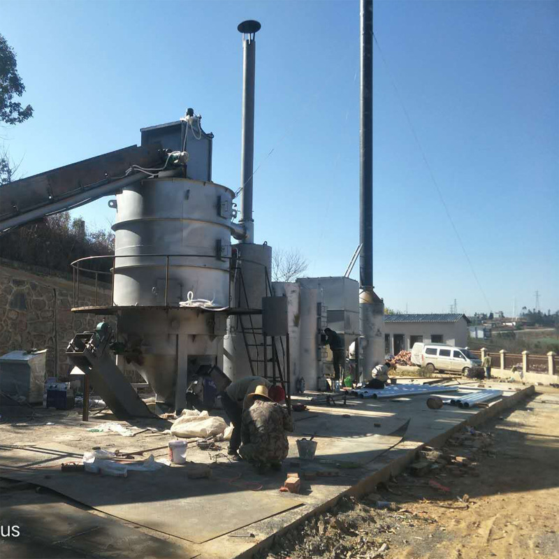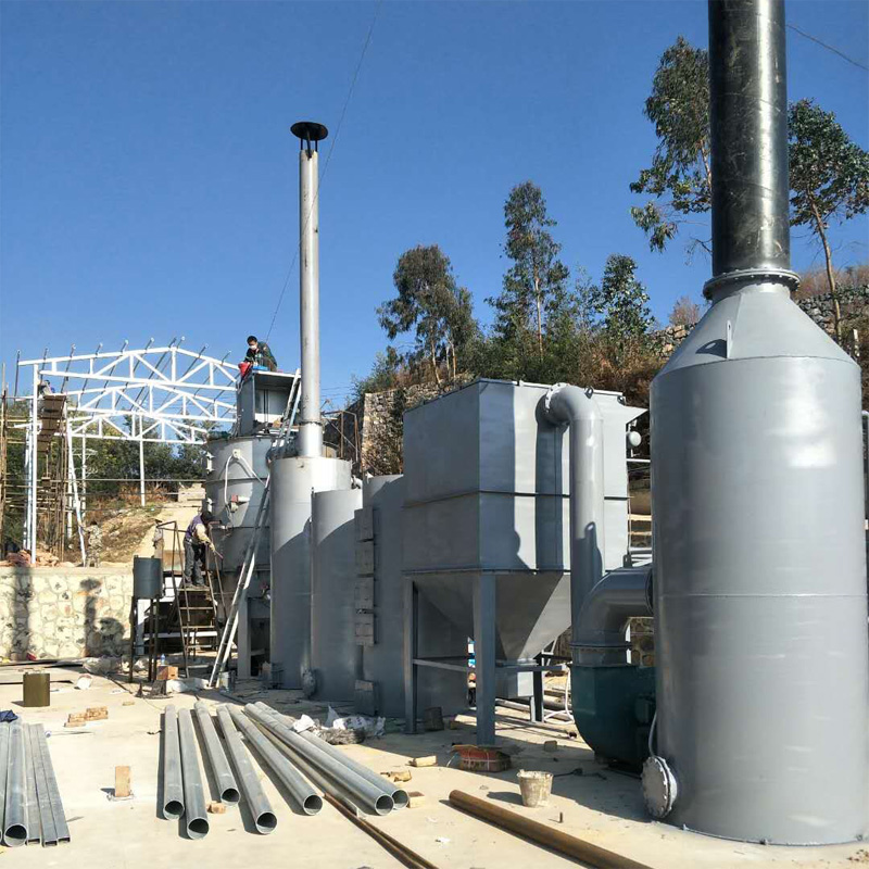 生活垃圾經(jīng)過分揀、擠壓、破碎,自動(dòng)輸送進(jìn)入垃圾焚燒爐主燃燒室。主燃室內(nèi)分為連續(xù)熱解干燥區(qū)、預(yù)熱自燃區(qū)、充分燃燒區(qū)和完全燃盡區(qū)。在連續(xù)熱解干燥區(qū)內(nèi),利用垃圾燃燒產(chǎn)生的熱量首先對(duì)垃圾進(jìn)行熱解、干燥處理。整個(gè)熱解干燥在厭氧的環(huán)境下完成。垃圾在連續(xù)熱解的過程中會(huì)分解產(chǎn)生沼氣、一氧化碳等可燃性氣體,有助于垃圾燃燒,減少后續(xù)助燃材料的使用成本;在預(yù)熱自燃區(qū)內(nèi),垃圾經(jīng)過前期的連續(xù)熱解之后,物料得以分解、焦化。焦化后的垃圾當(dāng)中,燃點(diǎn)較低的垃圾品類能夠在此過程中實(shí)現(xiàn)自燃。對(duì)提升爐溫,焦化高燃點(diǎn)垃圾起促進(jìn)作用。充分燃燒區(qū)以柴油為助燃材料對(duì)垃圾進(jìn)行充分焚燒,為焚燒爐的主要工作區(qū)域。當(dāng)爐內(nèi)溫度低于850℃時(shí),燃燒器自動(dòng)開啟,加油助燃;當(dāng)爐內(nèi)溫度高于1000℃時(shí),燃燒器自動(dòng)停止,中止供油,垃圾自行燃燒,節(jié)約燃料。垃圾燃燒后,減量比≥95%,爐灰自動(dòng)排出。煙塵在引風(fēng)機(jī)的作用下進(jìn)入雙水幕除塵系統(tǒng),對(duì)煙塵進(jìn)行脫硫,隨后進(jìn)入脈沖布袋過濾系統(tǒng),過濾掉煙塵中98%以上的粉塵,隨后,達(dá)標(biāo)高空排放。
